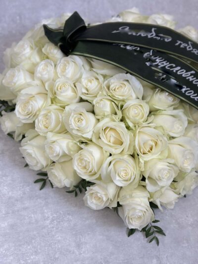 We make both funeral bouquets with stems and funeral arrangements on a special foam base. The arrangement in foam is usually bigger and will remain fresh for days. It is also easier to transport. Funeral arrangements can be made in different sizes and shapes – round, tear- shaped or oval. A ribbon with text you can add to your cart when placing your order.