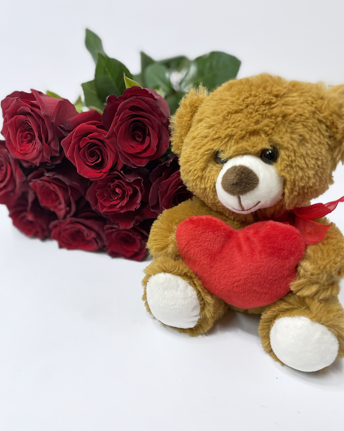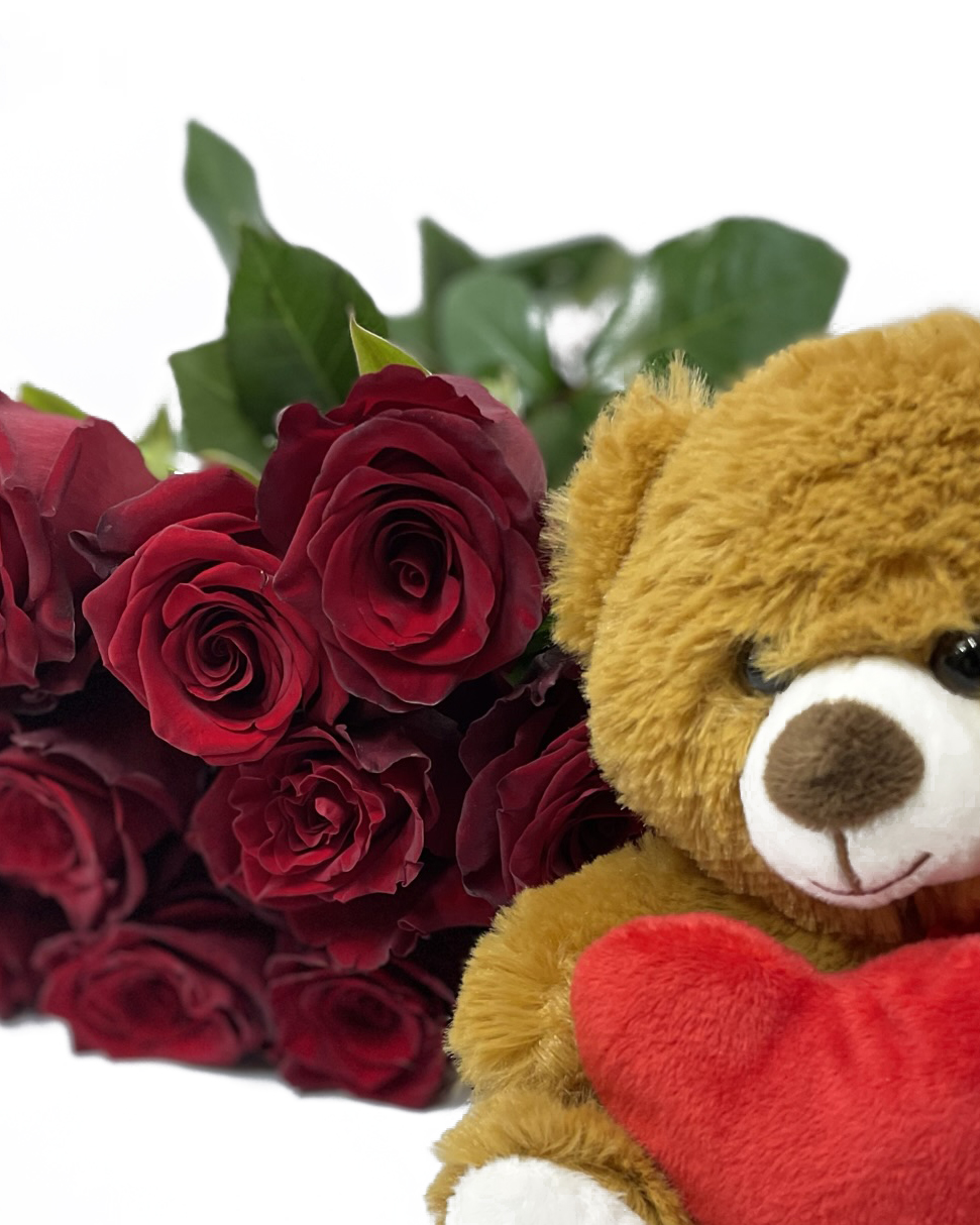 Bouquet of Red Roses and the Teddy with the heart