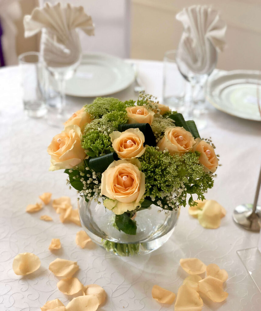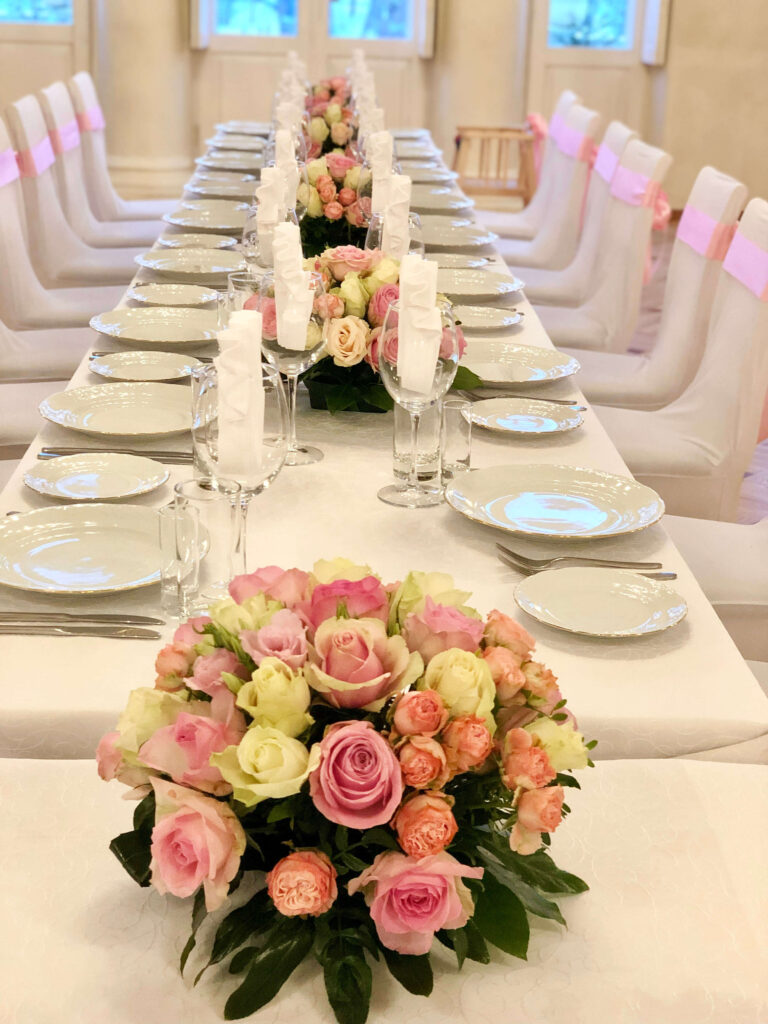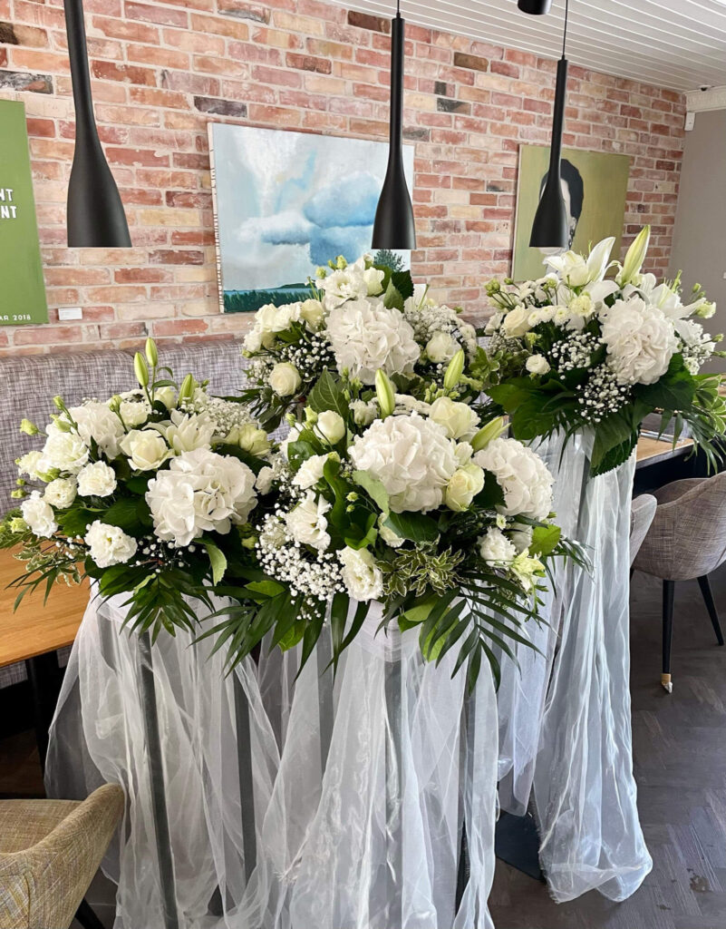 Lilleseaded pulmadeks ja ruumide dekoreerimine. Suurte pulmadega käivad kaasas ka rikkalikumad lilleseaded. Lisaks laudadele võib lilledega kaunistada ka trepikäsipuid, aknaid ja aknalaudasid, ruumis olevaid tugisambaid jms. Üldiselt toimib reegel: parem mõned suuremad seaded kui palju väikeseid, mis lihtsalt hajuvad interjööris. Peoruumide kaunistamiseks pakume rendiks oma erinevaid postamente, vaase, kangaid jms.