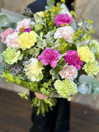 NB. Nelkide värvus võib kimbus erineda vastavalt poes olevale valikule
