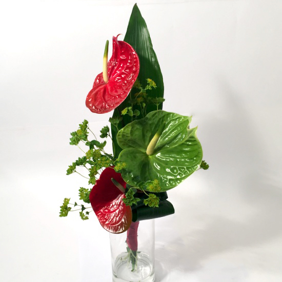 Esinduslik kimp flamingolilledega. Pildil olev kimp on keskmise suurusega- 3 lille, väikeses kimbus on 2 lille ja külluslikus 5 lille