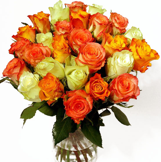 Букет из белых, оранжевых и розовых роз