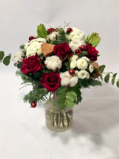Talvine armas lillekimp, milles klassikalisele roosile annavad pehmust valged puuvillatupsud ja erinevad muud lisandid. Meeleolukas ja kauasäiliv lilleseade. Väiksemas kimbus on 5 roosi, keskmises 9 , külluslikus 15