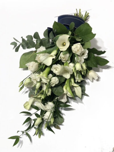Puhas ja rahulik valge kimp preeriakelladest ja kalladest. Vastavalt hooajale saame lisada ka valgeid tulpe